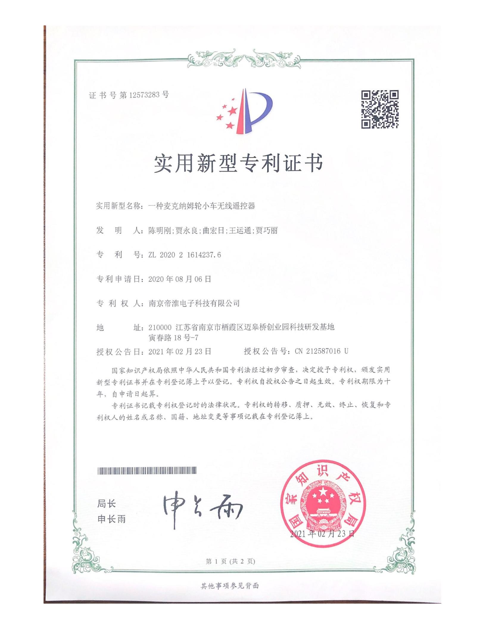 南京帝淮电子科技有限公司,国内工业??仄餍幸盗炀笠?,自主研发、定制、非标设计各类工业级无线??仄?、工业级有线控制器、智能化自主算法逻辑的本地控制器等系列产品。已经申请及正在申请的技术专利、外观专利有近三十项左右,并通过了CE欧盟认证、国家级试验检验报告、EMC电磁兼容认证等。