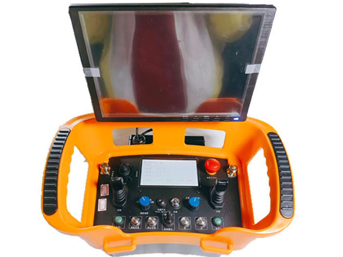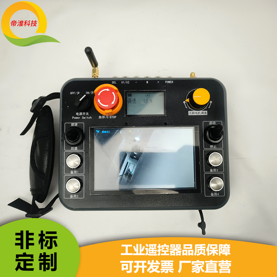 双摇杆式7寸触摸屏5个界面带虚拟按钮及数据反馈显示双向模式工业无线遥控器